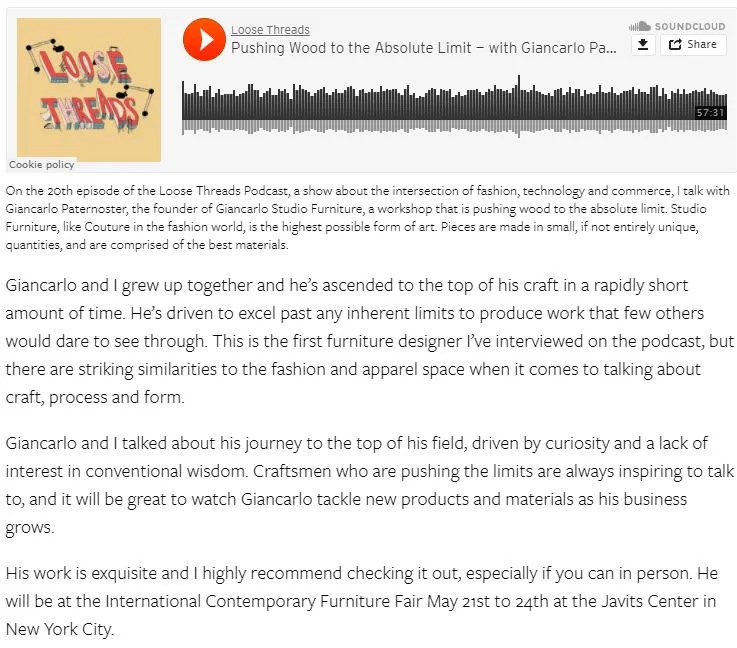 Press: Media: Giancarlo Studio Furniture is proud to have been featured in the following magazines, newspapers, podcasts, and blogs.